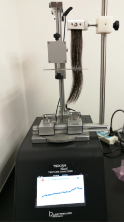 • 頭發梳理性測定儀對于一個快速和完整的紋理分析的樣品的一致性,彈性和粘...